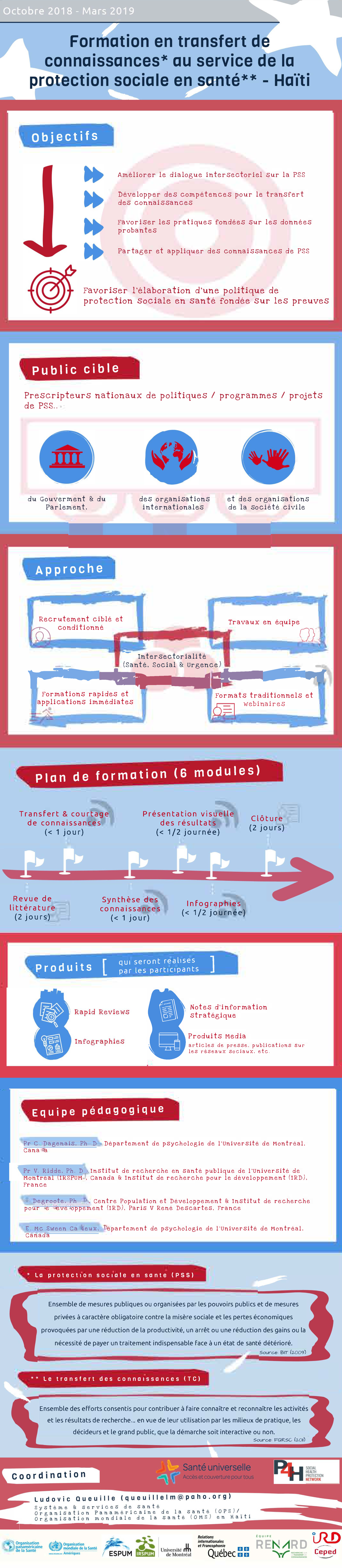 Projet de formation en gestion et transfert des connaissances au service de la Protection Sociale en Santé/Santé Universelle (Octobre 2018/Mars 2019) par OPS/OMS (Haïti) et IRSPUM (Canada) avec IRD (France) et CEPED (France) avec cofinancement du Ministère des relations internationales et de la Francophonie (MRIF) du gouvernement du Québec (Canada).